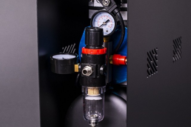 Panzag AS196AW er en stillegående og meget kraftig airbrushkompressor med ståldeksel. Den har to sylindere (olje og vedlikeholdsfri) og en stor tank på 3,5L som sikrer ren og stabil luftstrøm.