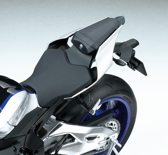 1998 was a year to remember in motorcycling as Yamaha released the first YZF-R1; developed to provide thrilling speed on winding roads, it proved a highly popular bike. In 2015 the latest YZF-R1 model was released, designed with an evolved concept that would make it a more circuit-oriented bike. The range includes the YZF-R1M, which benefits from Yamaha’s extensive MotoGP experience. It gets the most out of its 200hp 998cc 4-cylinder engine, with a class-leading electronics package to support the rider. A data logger and Communication Control Unit (CCU) record lap times and course information, while carbon fiber body cowls further boost performance. The long-running Tamiya 1/12 Motorcycle Series now welcomes this highly refined motorcycle into its stable of subjects.