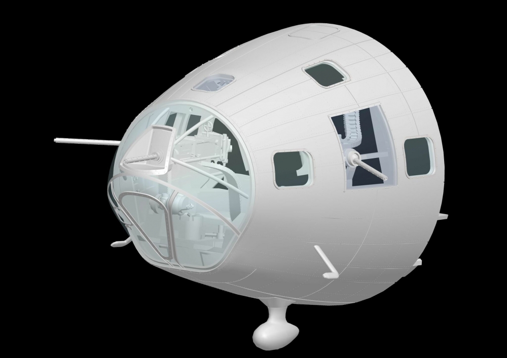 The Boeing B-17 "G"; was perhaps the most significant of all the types built, and of course numerous modifications were carried over from the "F" version, such as the remotely controlled Bendix chin turret introduced in the late block production "F". Differences between the "G" version and the previous main production "F" type were the positions of the cheek guns to accommodate the remote control rod for Bendix turret operation, and for the late block production "G" the introduction of the Cheyenne rear gunner position, which offered a reflex sight and a much improved field of fire.