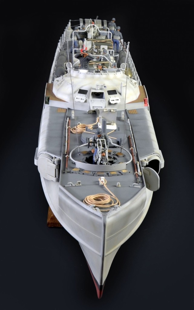 Among the various stipulations of the Treaty of Versailles in 1919 was a severe limitation of German naval construction. Small craft were not covered by these stipulations and resulted in the development of motor torpedo boats starting in the late 1920s. The design was based on a civil yacht which was, however, modified to be able to transport two torpedoes: the S-1. The evolution of the design continued until it reached, in its most advanced models, 35 meters in length weighing in at 100 metric tons. Even room for secondary armaments was progressively increased. The construction was composite, with aluminium beams and wooden planking. The characteristic ironclad deckhouse appeared with the S-100 model and was a necessary response to increased Allied air superiority and to the intensified low flying air attacks being flown. The boats were primarily used to attack allied ships in the coastal areas of the British Isles, but were also used for operations in the Mediterranean and Black seas, usually under cover of dark. Starting in 1943, after great part of the Kriegsmarine had been either destroyed or immobilised, these motor torpedo boats were among the few vessels still in the water and able to perform military operations, exposing them to a progressively increasing number of battles and the consequent grave losses.
