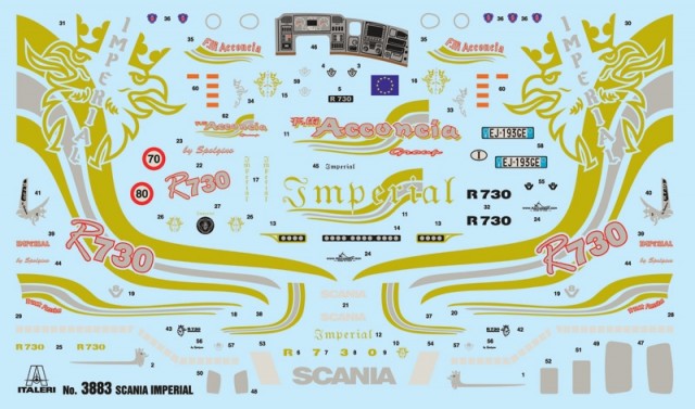 The Scania Series R heavy-tractor is available with V8 engine and has been developed according to the current world market requirements. The V8 SCANIA engines are designed to carry out the most demanding tasks and are appreciated for their sturdiness, reactivity, and efficiency. The Scania R Series is designed to meet the most demanding requirements in terms of fuel-saving and reliability. The exterior design gives the vehicle a huge view of the road and is considered the number one for "SHOW TRUCKS", the famous decorated tractors. The extraordinary exterior style is matched with exclusive new interiors which provide exceptional comfort for the driver and a wide range of colour and material options. In addition, our tractor model is finished with fantastic decals and metallised stickers ready to be applied. The packaging also contains new chromed plastic parts that give the model a realistic appearance.