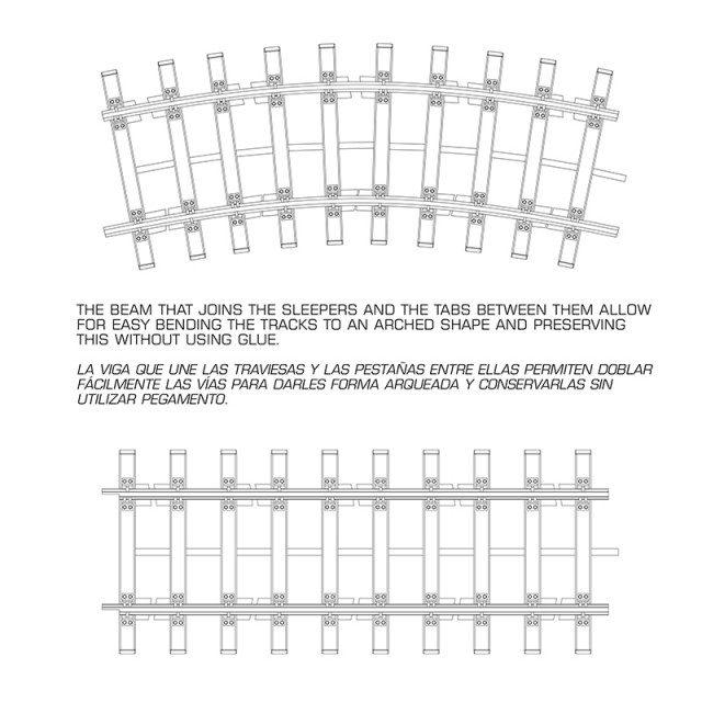 *The beam that joins the sleepers and the tabs between them allow for easy bending the tracks to an arched shape and preserving this without using glue.