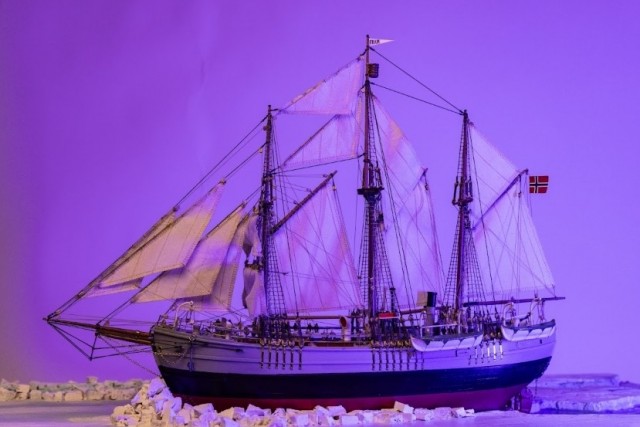 the history of Arctic and Antarctic exploration. Designed to defy the most merciless sailing conditions and withstand the onslaught of ice blocks as hard as rocks and sharp as blades, to keep going, always going, that's why the Norwegians christened her “Fram”.