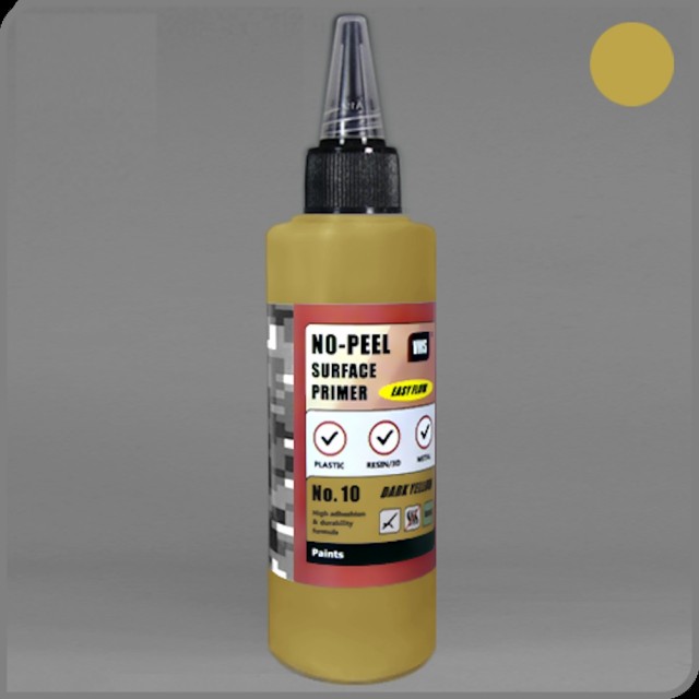 Mørk gul primer/grunning med glans som har god vedheft på plast-, metall-, resin- og 3D-printede deler.