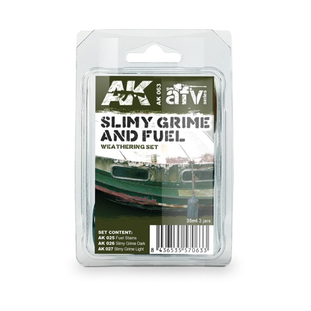 This three color set is ideal to make slime and fuel effects in your scale models. This set will enable the modeler to recreate Slimy Grime in ships and boats, docks, old wooden items and LVTP vehicles. Also, this set includes a very useful color to make fuel stains that are very different than grease and oil effects.