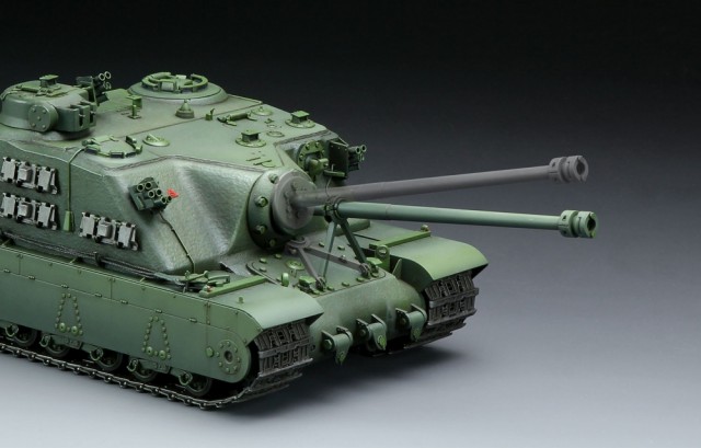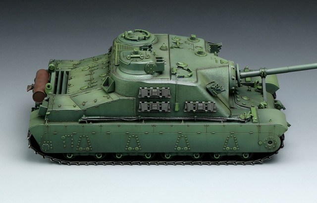 In late WWII, UK developed a huge monster as heavy as 79 tons—the British A39 Tortoise Heavy Assault Tank to strike German solid fortifications. It was designed with a fixed fighting compartment and extremely thick armor. The heavy hull was supported by a torsion bar suspension system. Its incredibly powerful 94mm Gun could fire at any ground target. The Tank had an additional fully rotatable turret to strengthen firepower, while a 7.92mm MG in the front was used to shoot infantrymen. As the tank was still in its trail stage when the project was terminated following the end of war, there were only 6 vehicles produced.