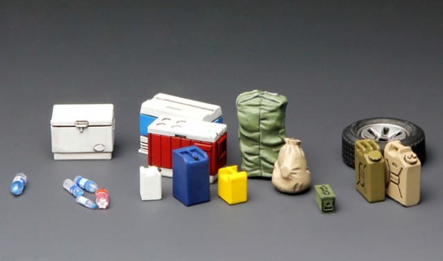 Plastbyggesett av en pickup med utstyr i 1:35 skala fra Meng Model.